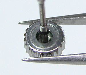 ベゼルはプラスチックパッキンで留まっています。竜頭の洗浄は完了。