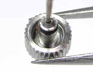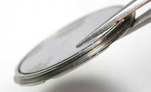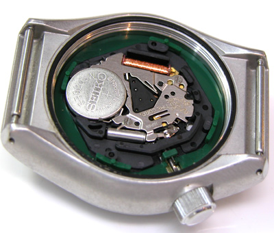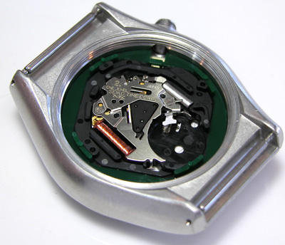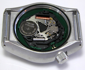 綺麗になったケースにムーブメントをもどして電池格納部をチェックします。