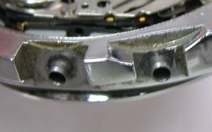 綺麗になったケースにムーブメントを戻して電池格納部をチェックします。