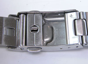 ステンレス無垢バンドに三つ折れダブルロックですがベルト修理もご依頼。
