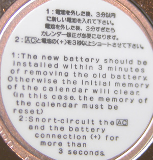 裏蓋の裏側を見れば電池交換後の注意点が。