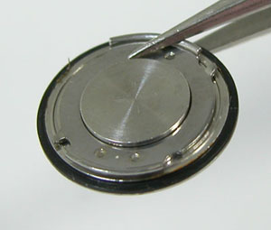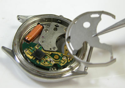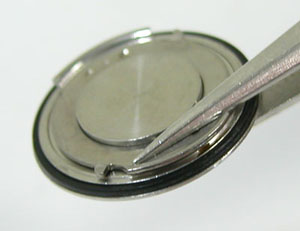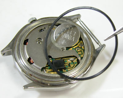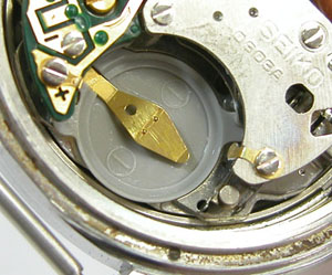 綺麗になったケースにムーブメントを戻して電池格納部をチェックします。