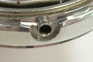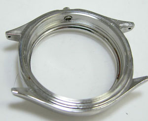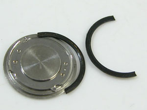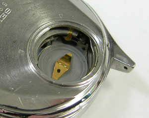 パッキンを外して汚れを拭き取ります。このパッキン若干硬化しておりますが、交換用パーツがないので交換が出来ない。当時の物は裏蓋パッキンが「平パッキン」のものが多い。