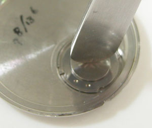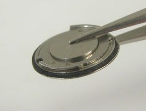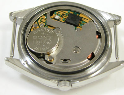 綺麗になったケースにムーブメントを戻して電池格納部をチェックします。