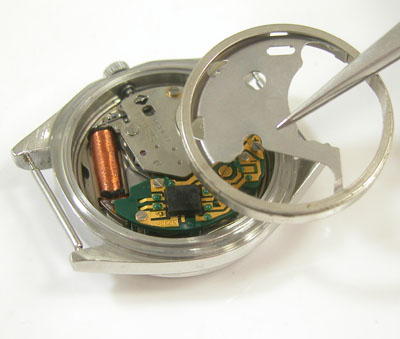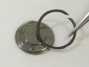 裏蓋を開けるとスペーサーがムーブメントを覆っています。