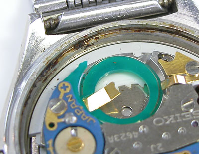 綺麗になったケースにムーブメントを戻して電池格納部をチェックします。