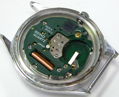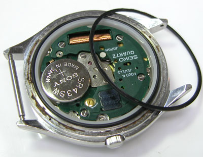 綺麗になったケースにムーブメントを戻して電池格納部をチェックします。