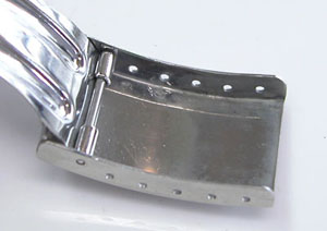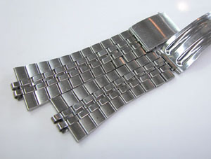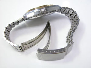 ステンレス板巻きバンドに三つ折れバックル。