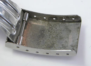 アジャスター付き三つ折れバックルも珍しい。最近では見かけなくなったパーツでもあります。
