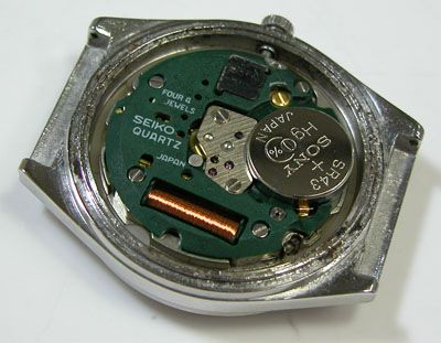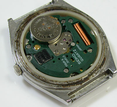 綺麗になったケースにムーブメントを戻して電池格納部をチェックします。