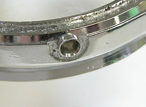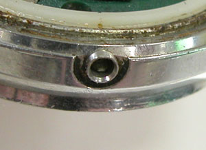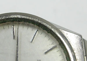 微調整部分の位置をチェックしておきます。ガラスとベゼルの隙間にも汚れがビッシリ。