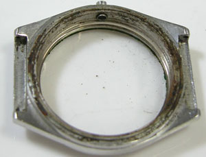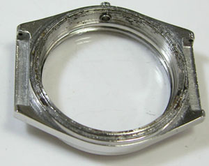 ケースの洗浄は終わってツヤが出ましたね。ただサビで出来た凸凹までは。