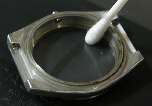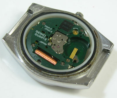 綺麗になったケースにムーブメントを戻して電池格納部をチェックします。