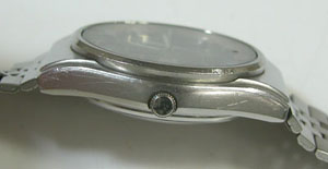 2011年4月お預かりのTypeU 7546-8080電池交換メンテナンスです。ガラス交換もご依頼ですが曇っておりますね・・。タイプ2のガラスですが平ガラスではありますが金属のベゼルがガラス周辺を覆い被さるように押さえる構造なので断面が「<>」尖った感じで普通の既製ガラスのような両サイドが切り立った感じのガラスでは留めることが出来ない。