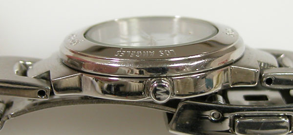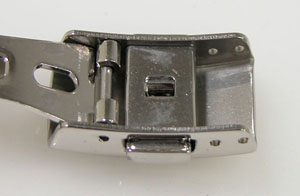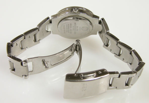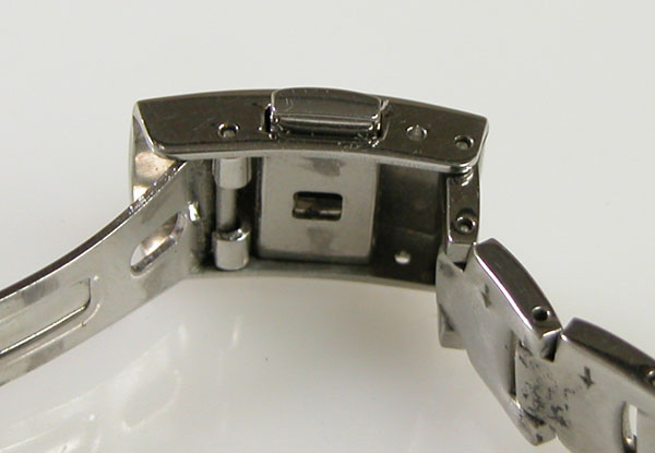 ステンレス無垢バンドに三つ折れプッシュバックル。