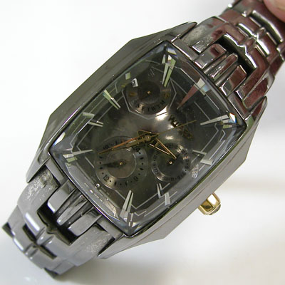 強烈なカットガラスにステンレス無垢バンドに三つ折れプッシュバックル。