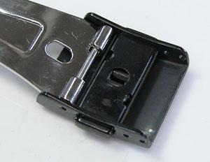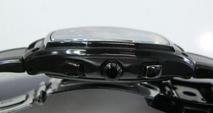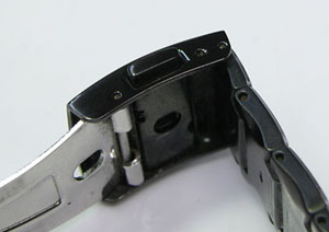ステンレス無垢バンドに三つ折れプッシュバックル。