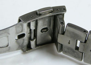 チタン無垢バンドに三つ折れプッシュバックル。