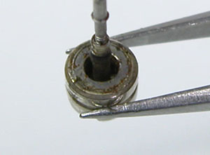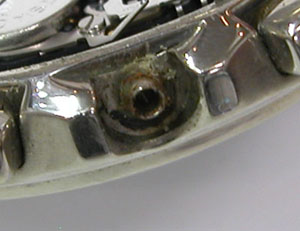 綺麗になったケースにムーブメントを戻して電池格納部をチェックします。