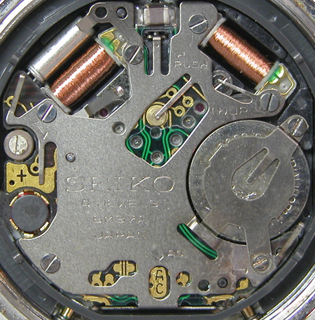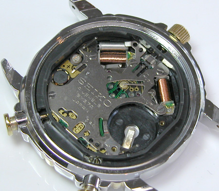 竜頭の裏側もチェックします。これが取り出した文字盤&ムーブメント。