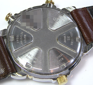 裏蓋にまでサビが及んでいます。竜頭の裏側は洗浄で綺麗になりました。