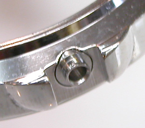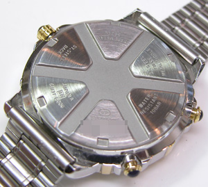 裏蓋はアラーム用の独特の形状でスクリューバック。