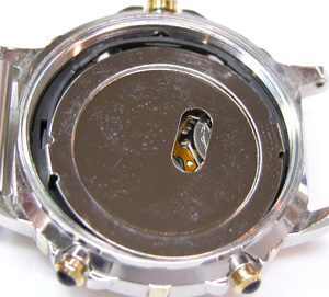 綺麗になったケースにムーブメントを戻して電池格納部をチェックします。
