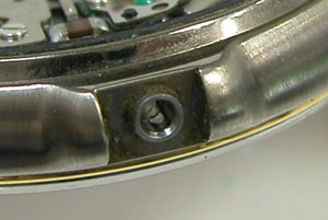 パッキンが硬化してパリパリですから交換してシリコン塗布をして裏蓋に戻します。