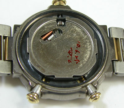 綺麗になったケースにムーブメントを戻して電池格納部をチェックします。
