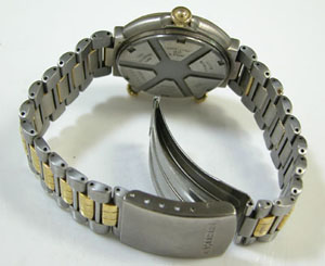 裏蓋を開けると耐磁プレートがムーブメントを覆っています。