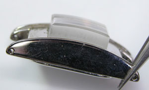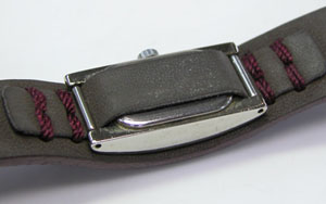 革に金属の塊を固定した独特のデザイン。