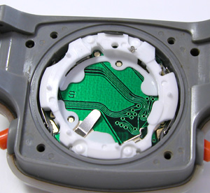 ちゃんとストロークはあるのですが、ちょっと接触が悪い。これはムーブメント側の接点が悪いので切り替わる時とそうでない場合がありますが、意外に軽く押すと切り替わります。