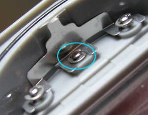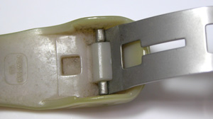 電池交換の為にバネ棒を外しますが、外から突けるタイプですから簡単に外れます。ラグ部のチェック。