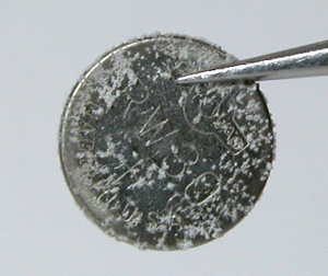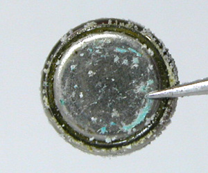しかし見ると電池が完全に液漏れ状態。これは止まったまま10年以上放置のパターン。電池押さえまでが錆びていますから強烈。