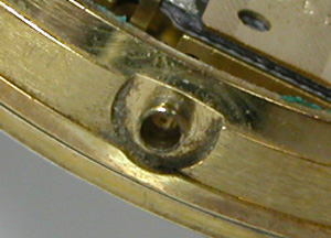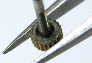 先ずは竜頭を抜きます。竜頭の裏側チェック。