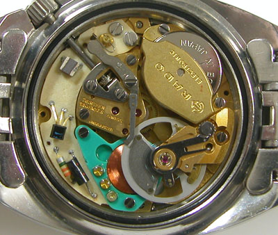 電池格納部をチェックします。振ればテンプは動きますが電池を入れても不動です。