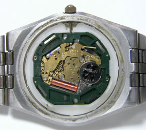 それでも裏蓋を開ければ必ず、この程度は汚れています。これも安い所ではこのまま電池のみ換えて裏蓋をこのまま閉めます。