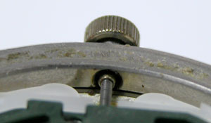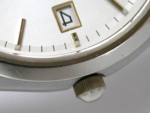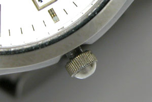 先ずは竜頭が回るか確認。この時計の場合外見は綺麗ですが竜頭が固まって動きません。ねじ込み竜頭か?と思ったくらいです。